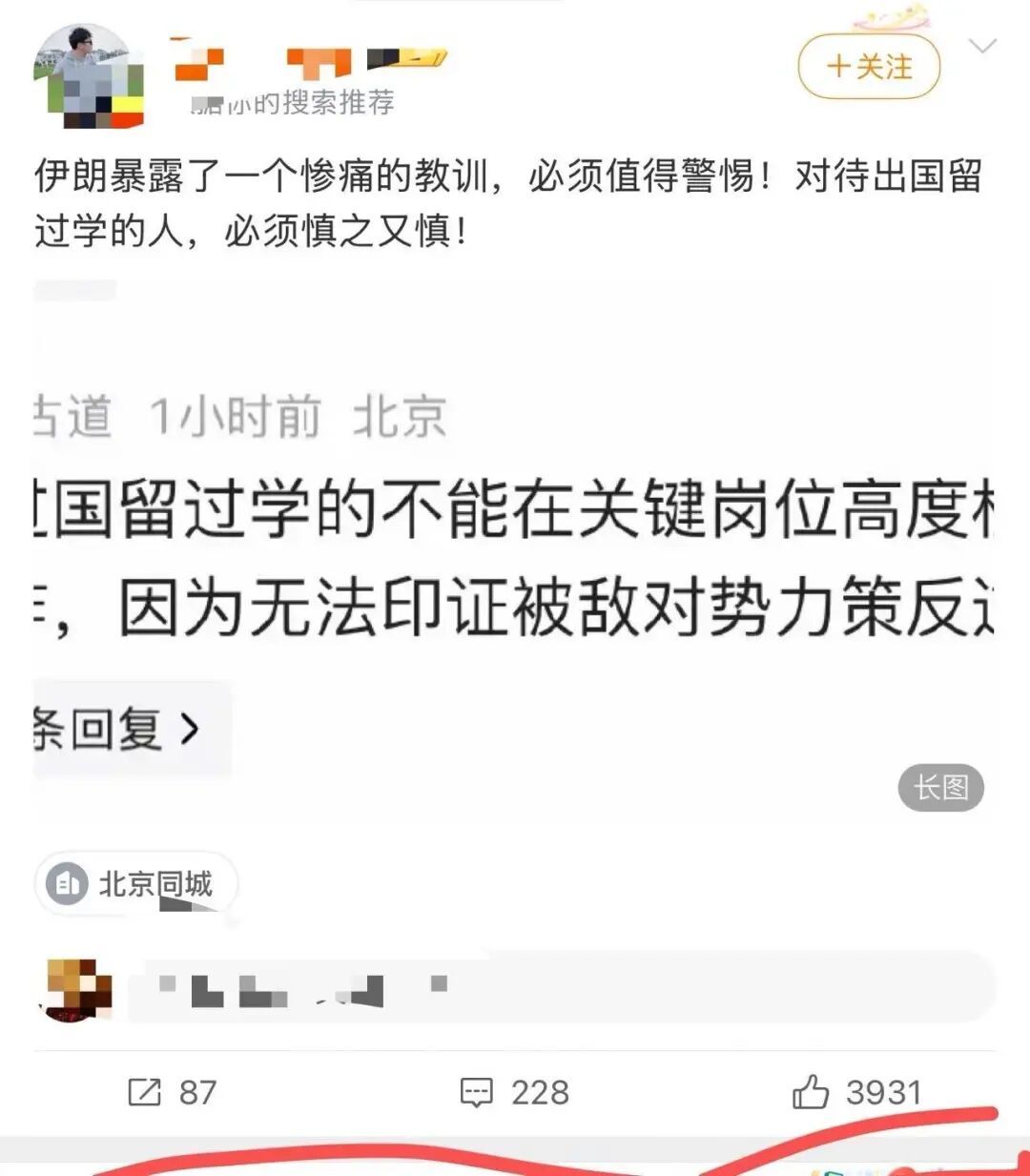 哈梅内伊被炸死后,现在全网又在呼喊着内奸,渗透,有的博主又开始将矛头对准留学生,对待出国留学的人,必须慎之又慎。